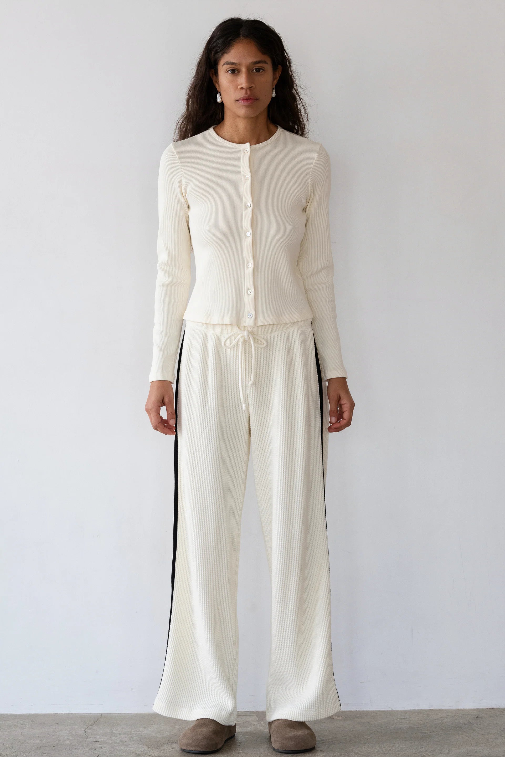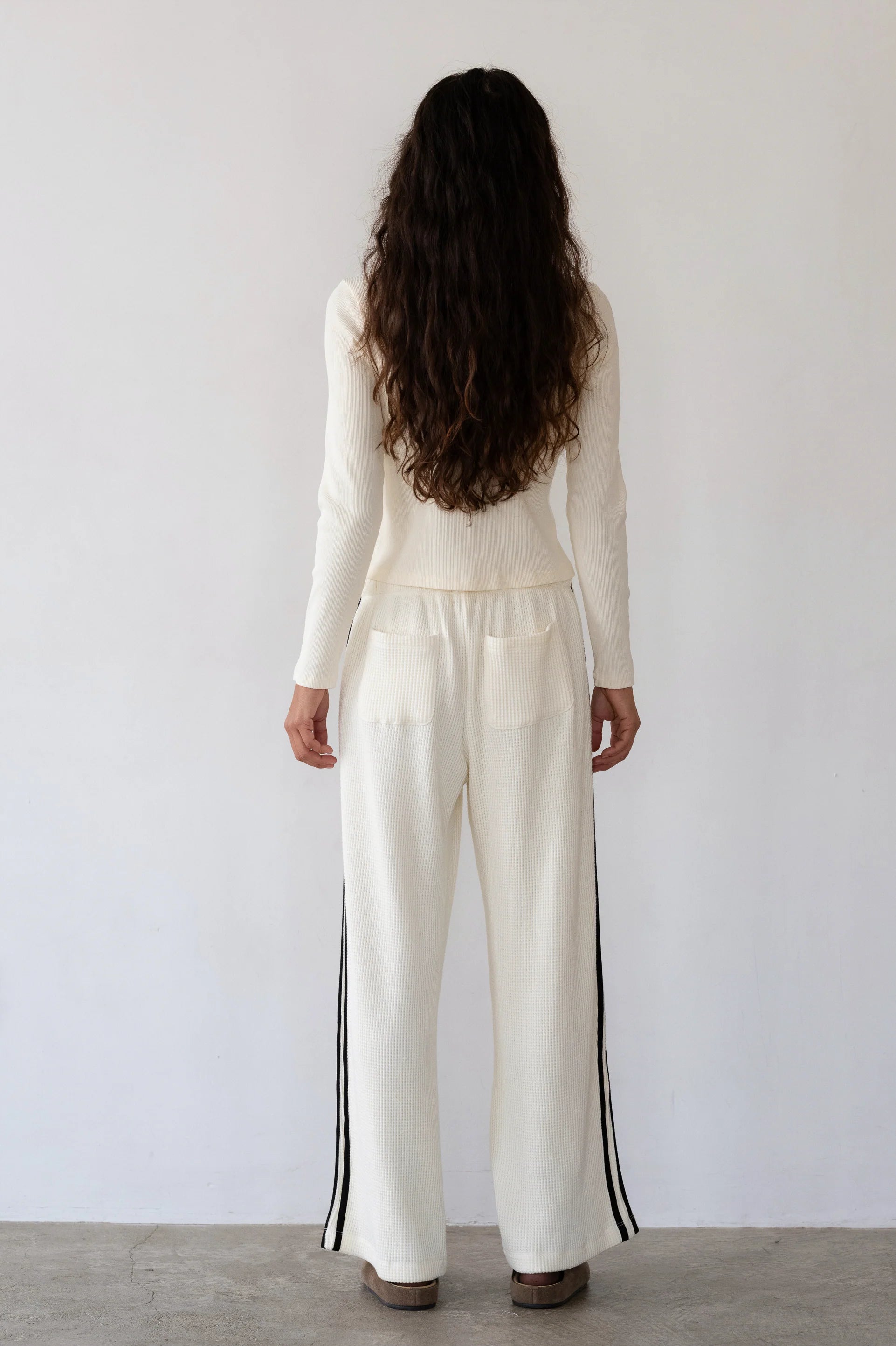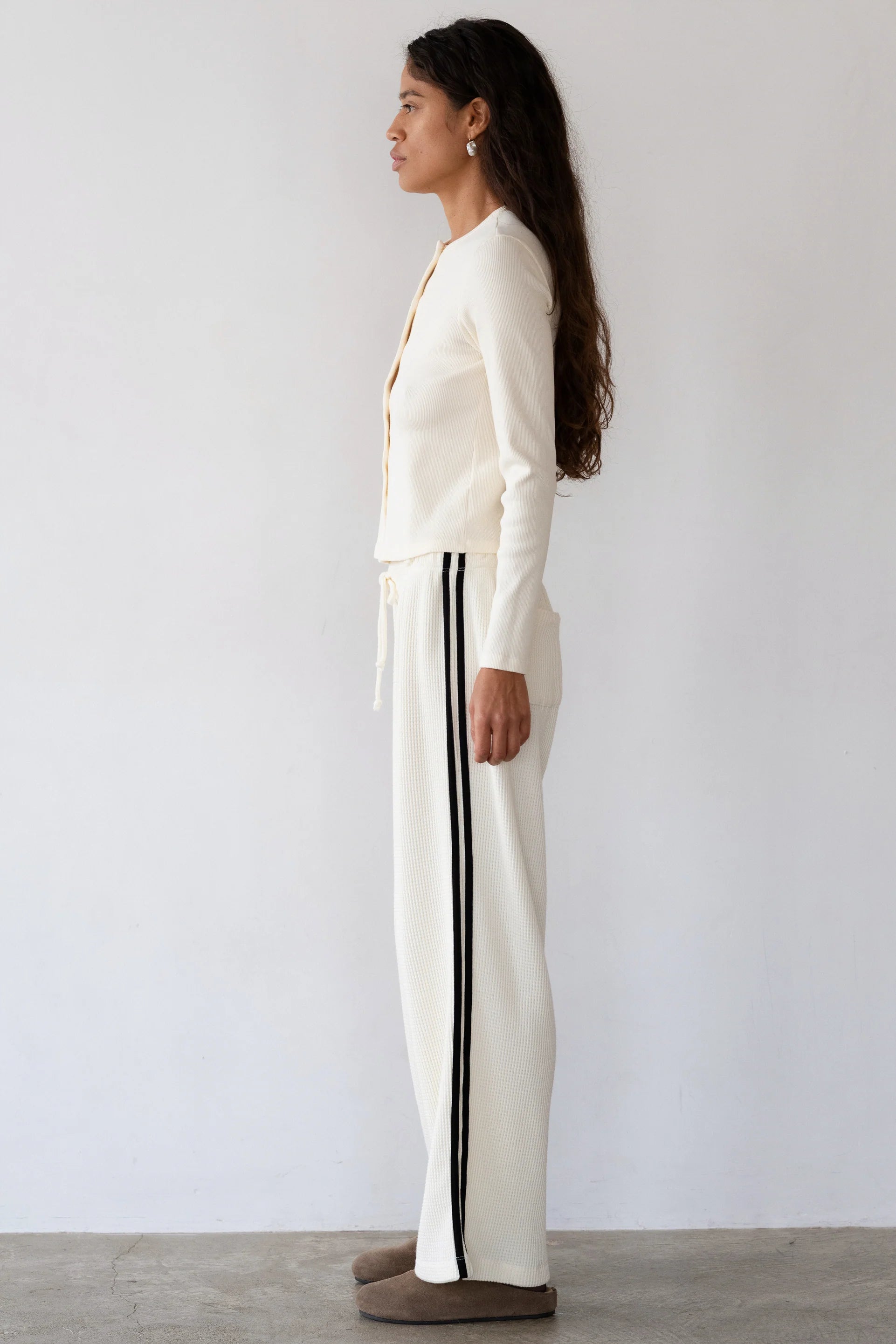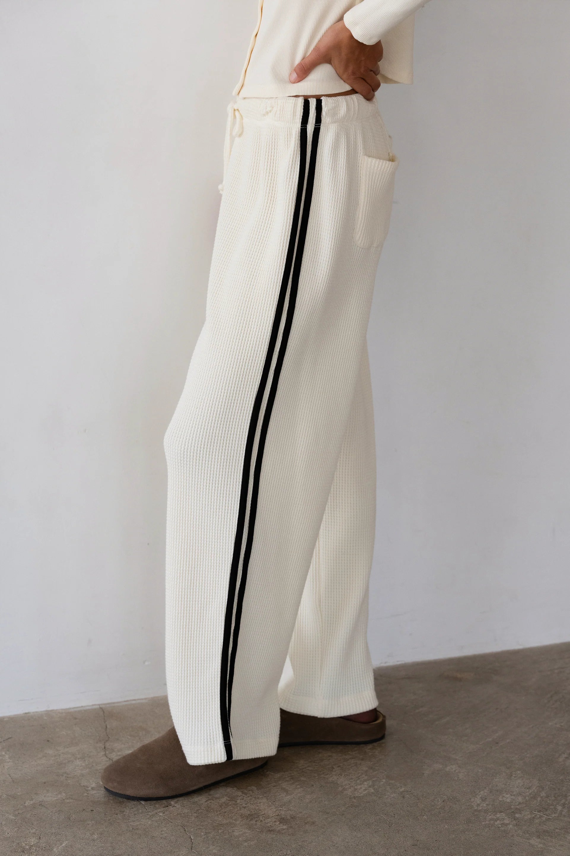 The Thermal Crop Stripe Pant in Cream