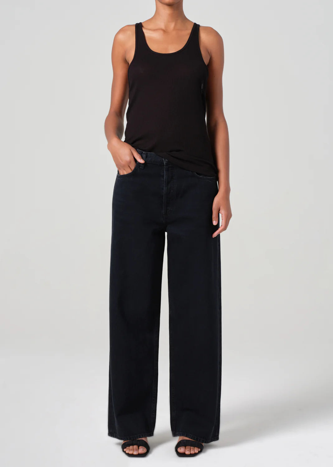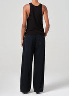The Low Slung Baggy is designed for an effortless yet ultra-flattering fit, featuring a relaxed, upsized silhouette that sits low on the hips and falls into a directional baggy straight leg. Crafted from a blend of regenerative and recycled cotton, it offers both structure and an elegant drape. The dark indigo denim is finished with fading and light whiskering, giving it a naturally worn-in feel. Style it with a fitted tee and boots for a balanced silhouette or pair with an oversized blazer for a modern take on relaxed tailoring