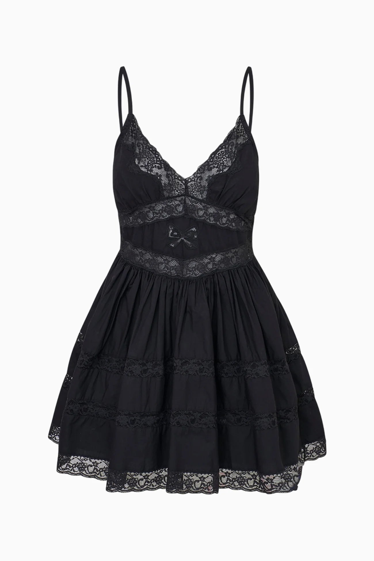 Zima Cotton Lace Bow Mini Dress in Black