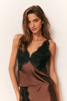 Elloryn Satin Cami Top in Chocolate Brown