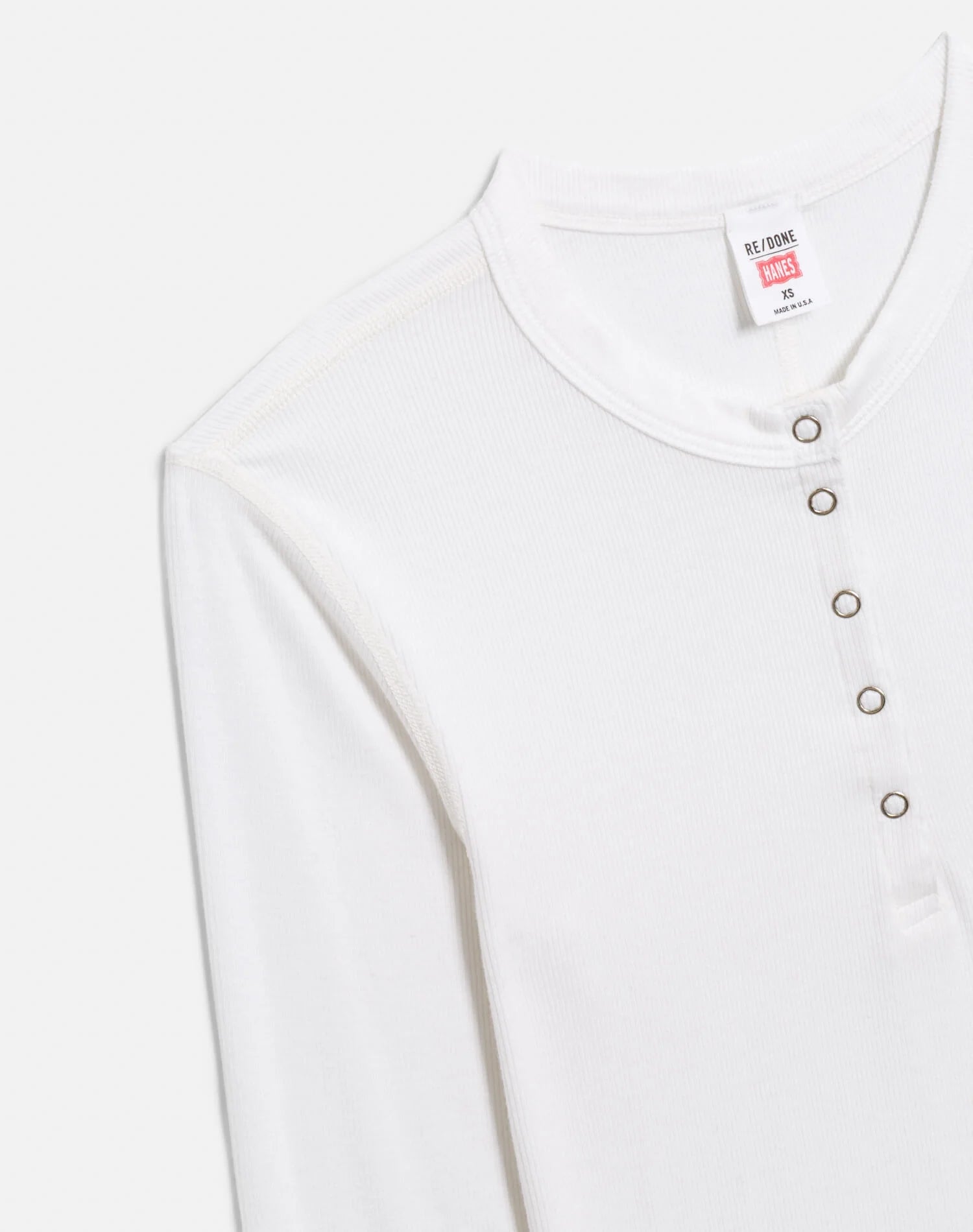 Hanes Long Sleeve Ribbed Henley In Off White