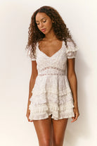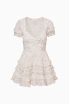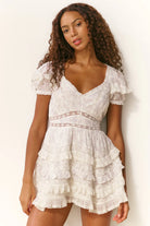 Nivara Lace Inset Tiered Cotton Mini Sundress in Chantilly