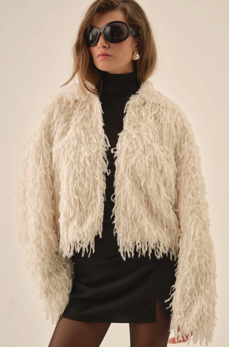 Ruffle Faux Feather Jacket