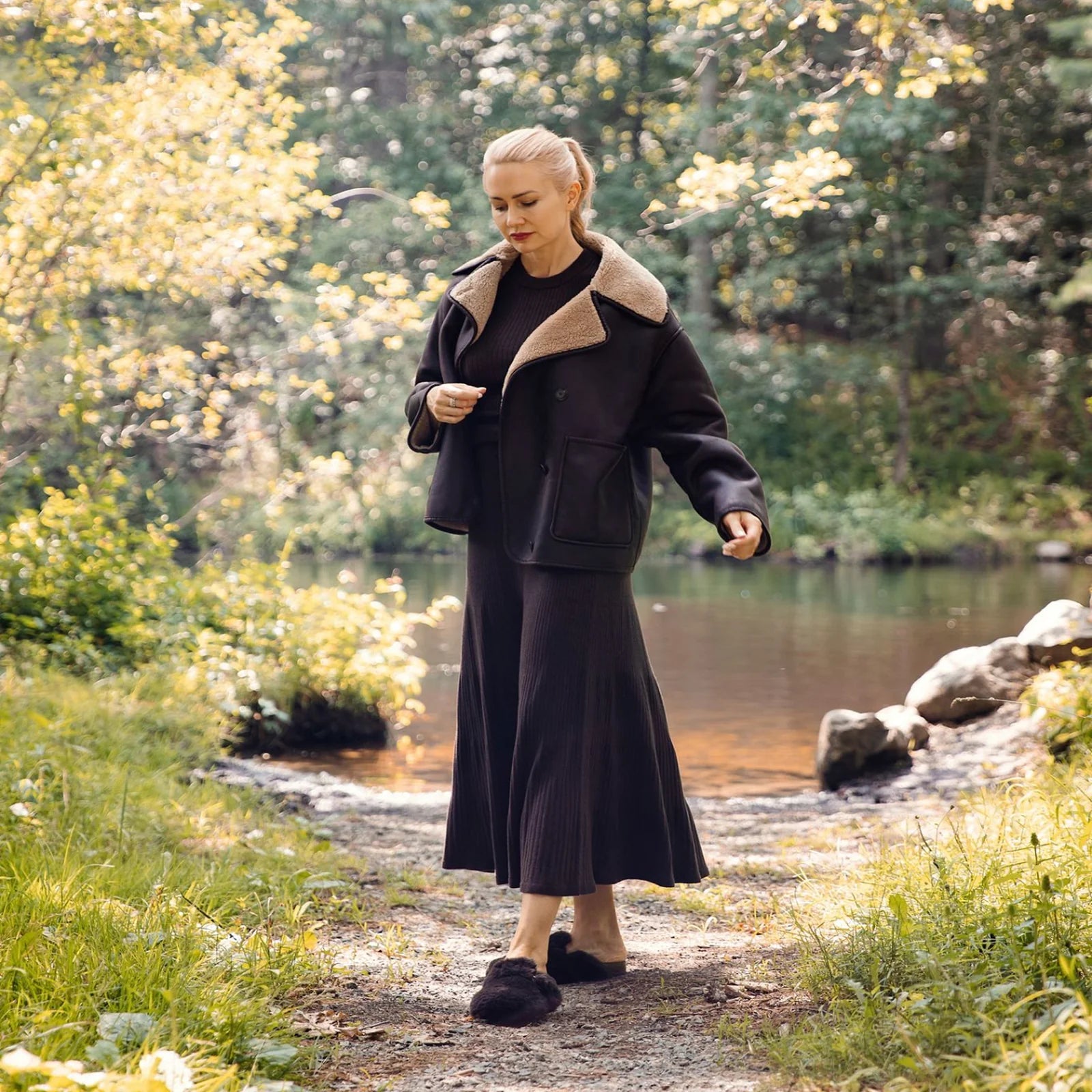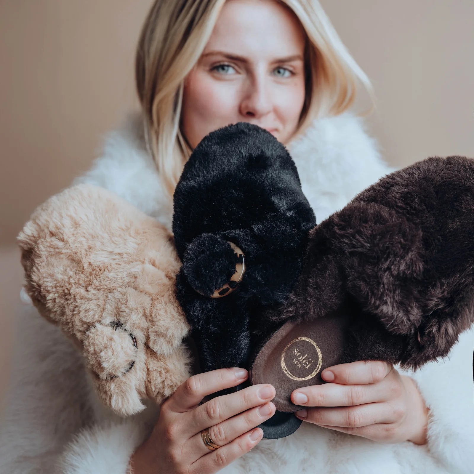 Ziela Fur Strap Slide in Sable