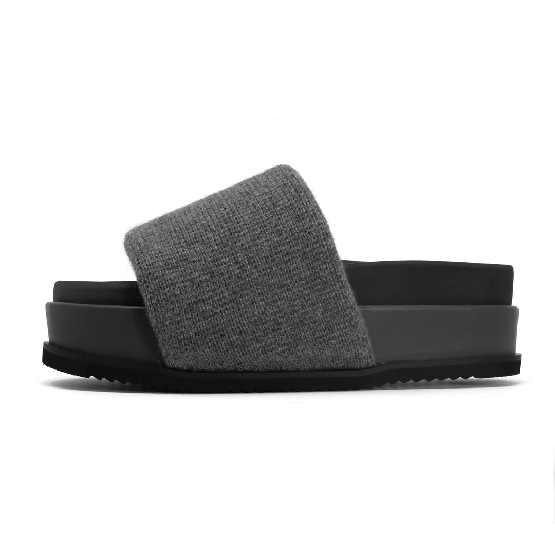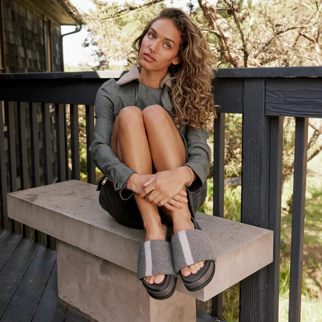 Cash Stripe Stack Charcoal & Recycled Cashmere Slides