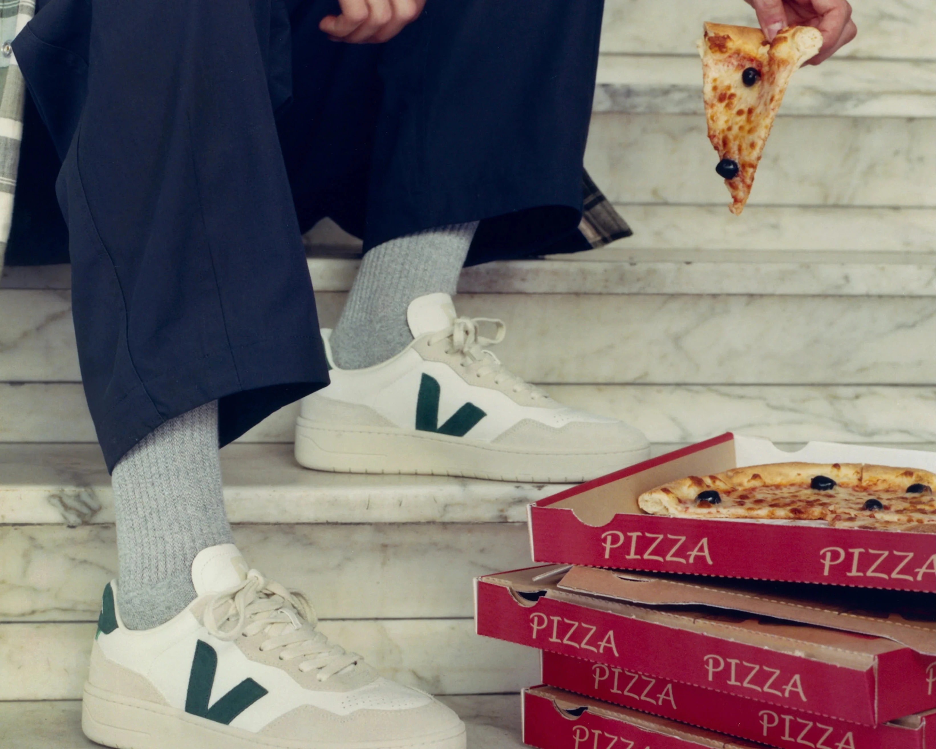 V-90 Leather White Steel Sneakers