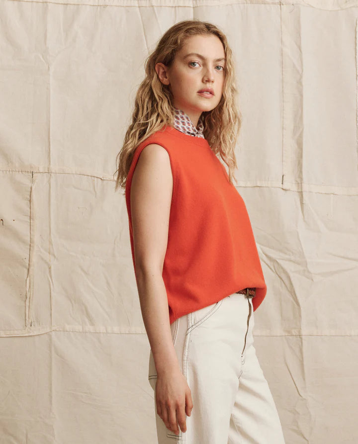 The Cashmere Pullover Vest in Hot Orange