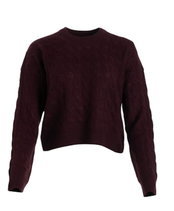 Premium Cashmere Cable Crewneck in Merlot